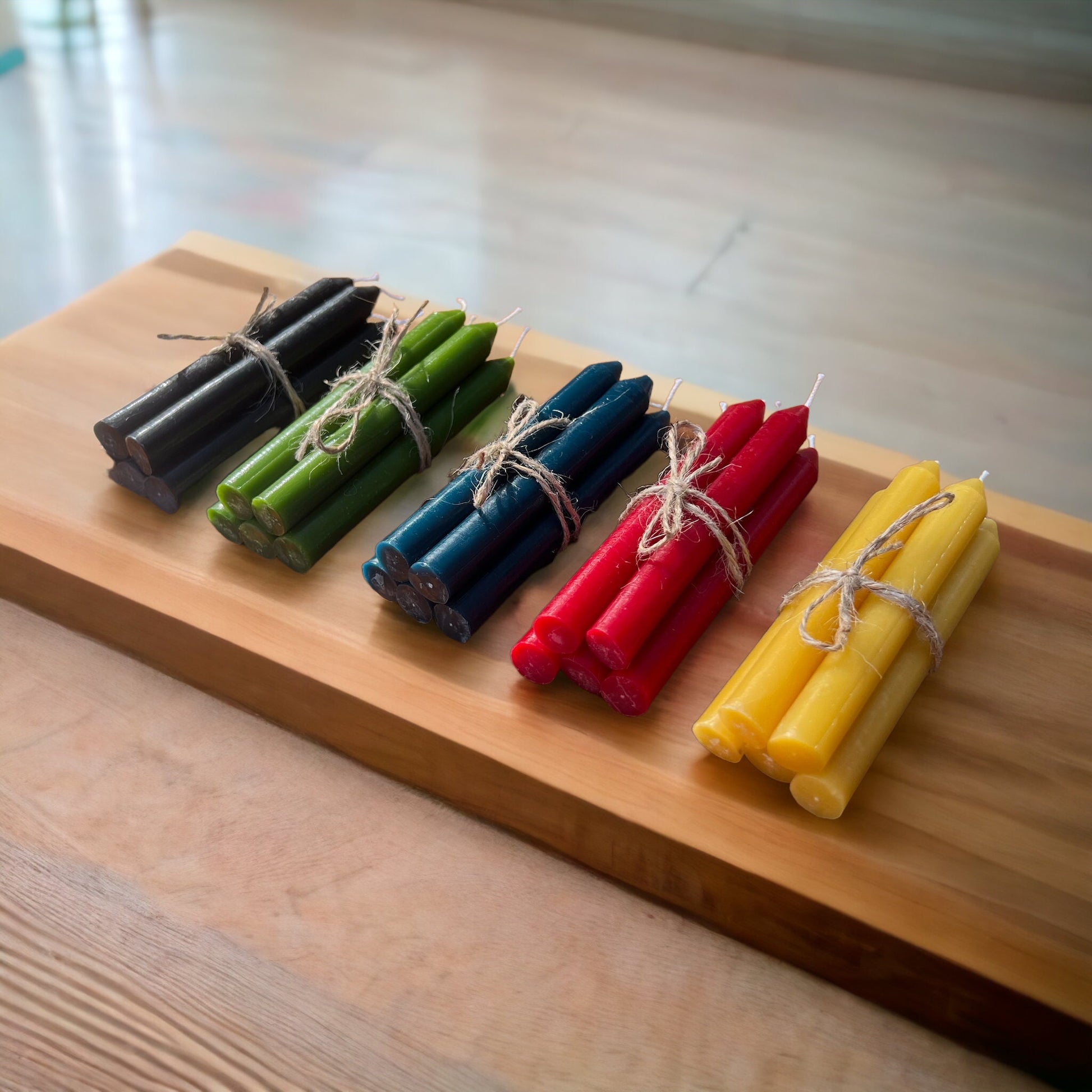 All candles are available in six colors: natural yellow, red, black, green, blue, and orange.