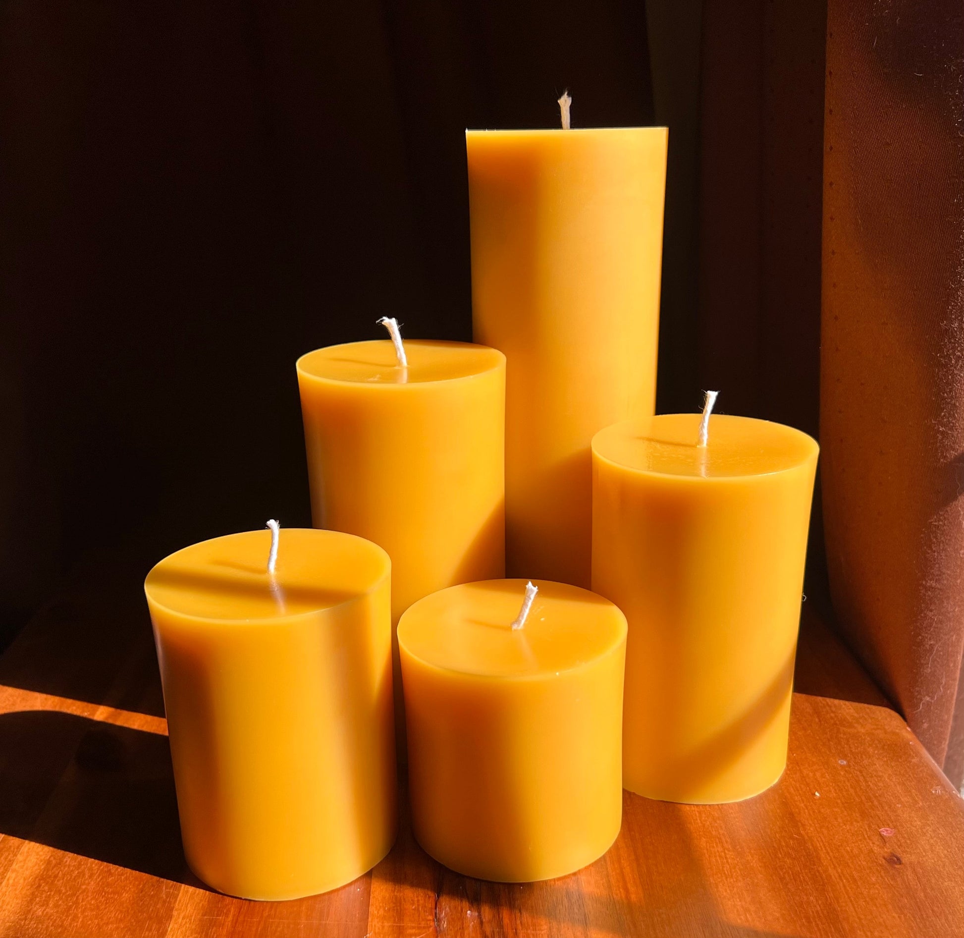 100% Pure Beeswax Pillar Candles – 3" Diameter, Multiple Sizes Available