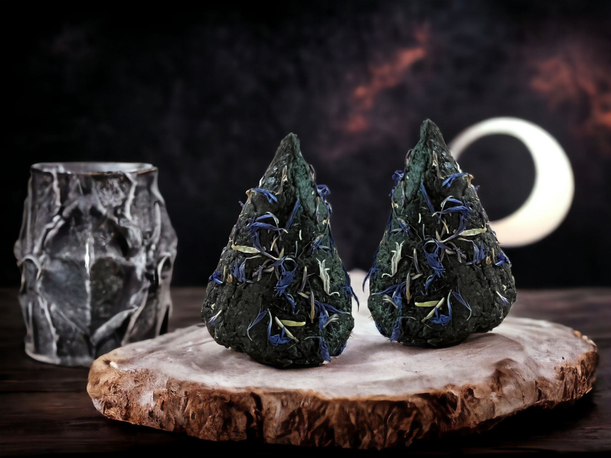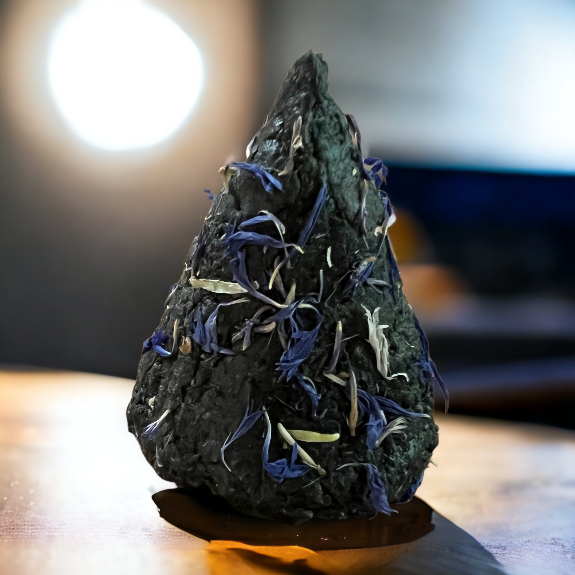 This candle does not contain a wick. It burns through the combustion of herbs, creating a strong and active flame.