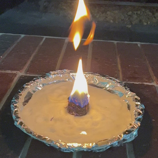Use extreme caution when burning this candle. The flame will be very strong and high. Always burn in a heat-resistant bowl with wide sides. Place foil on the bottom and add a thick layer of salt for additional safety and heat control. Never leave the candle unattended.
