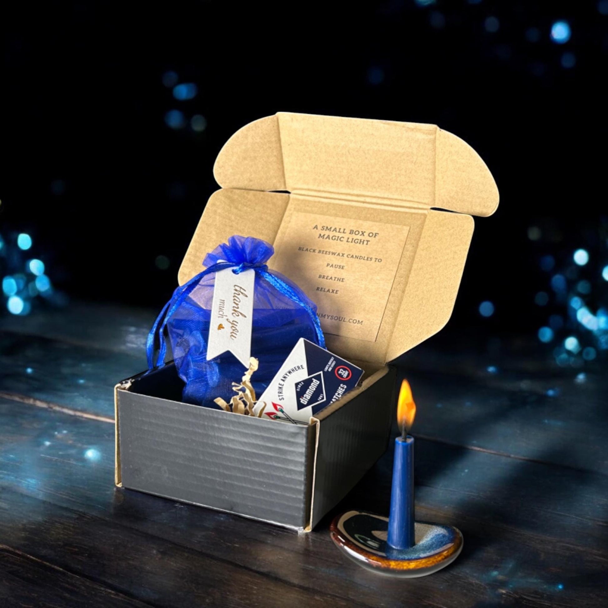 Candle Calendar – Set of 31 Blue Mini Beeswax Candles with Holder & Matches