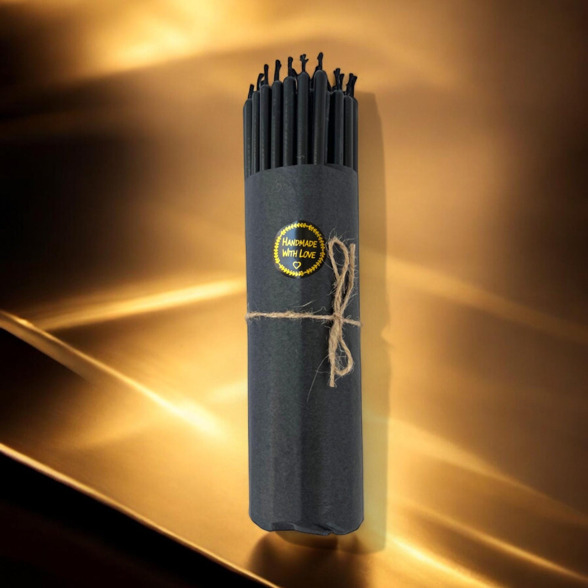 Unique slim black candles with black cotton wicks, handcrafted in limited quantities from 100% pure beeswax sourced from local Texas apiaries. Free from additives and artificial fragrance, they burn cleanly and evenly with a subtle, natural honey aroma.